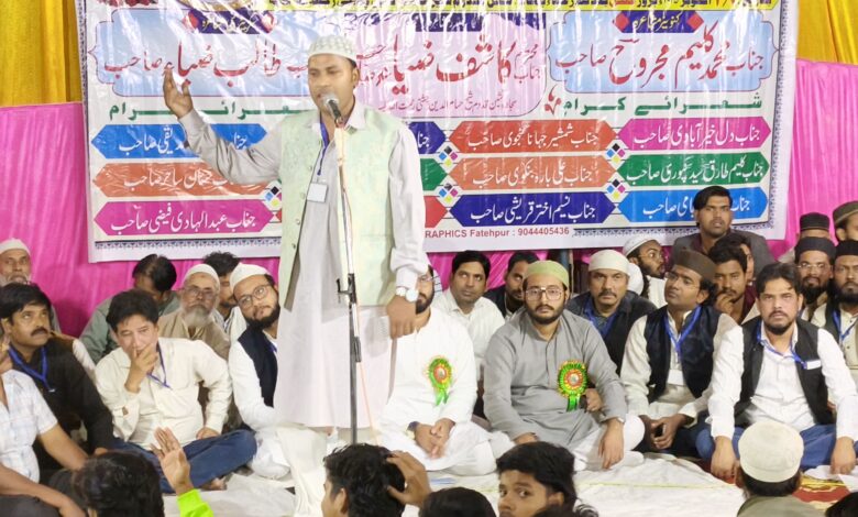 फतेहपुर बाराबंकी। कल रात मखदूम शेख हिसामुद्दीन (र0अ0) के 592 उर्स के मौके पर आल इंडिया नातिया मुशायरा मुनक्किद किया गया। मुशायरा की सदारत सज्जादा नशीन शेख काशिफ जिया मखदूमी ने व निजामत सूफियान हैदर रांचवी ने की। हाफिज सलमान राईनी की तिलावत ए कलाम पाक से मुशायरा का आगाज हुआ। इस मौके पर जिन शायरों के कलाम को समाइन ने खूब पसंद किया वो इस तरह है-